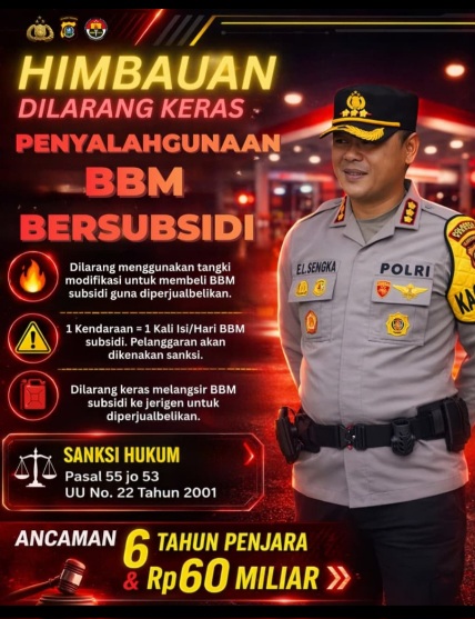 Jika dilanggar, ancamannya bukan sekadar tilang atau teguran. Polisi menyiapkan jerat pidana berdasarkan Undang-Undang Migas sebagaimana telah diubah melalui UU Cipta Kerja.