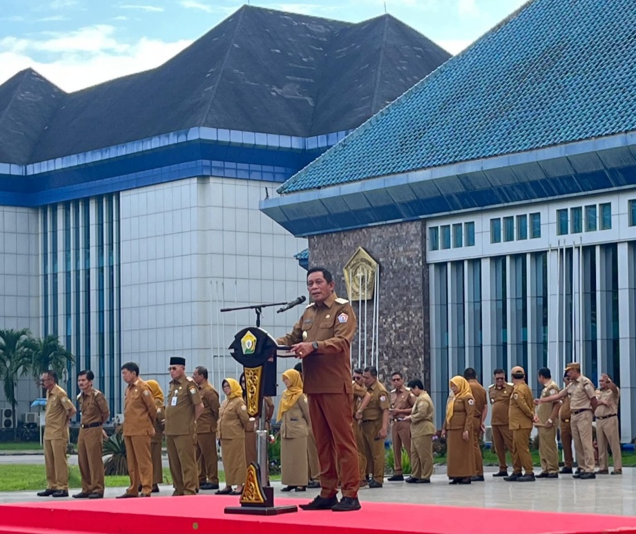 KENDARI, Kongkritpost.com- Wakil Gubernur Sulawesi Tenggara (Sultra), Ir. Hugua, M.Ling., memimpin apel gabungan Aparatur Sipil Negara (ASN) lingkup Pemerintah Provinsi Sultra, yang digelar di Lapangan Kantor Gubernur, Senin (21/7/2025). Ribuan ASN dari berbagai instansi hadir, termasuk Sekda Provinsi Sultra, Staf Ahli Gubernur, para Asisten, Kepala OPD, serta pejabat struktural dan fungsional.