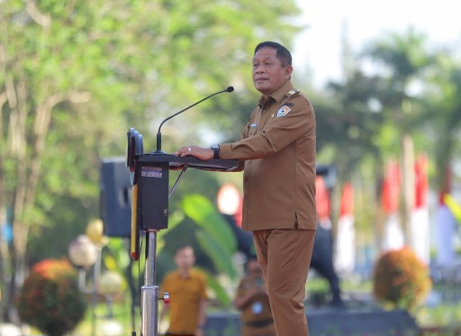 KENDARI, Kongkritpost.com-Wakil Gubernur Sulawesi Tenggara, Ir. Hugua, memimpin Apel Gabungan Aparatur Sipil Negara (ASN) di lingkungan Pemerintah Provinsi Sulawesi Tenggara yang digelar di Lapangan Kantor Gubernur pada Senin (4/8/2025). Kegiatan ini dihadiri oleh Sekretaris Daerah Sultra, para Staf Ahli Gubernur, Asisten, Kepala Organisasi Perangkat Daerah (OPD), Kepala Biro, pejabat struktural dan fungsional, serta ribuan ASN dari berbagai instansi.